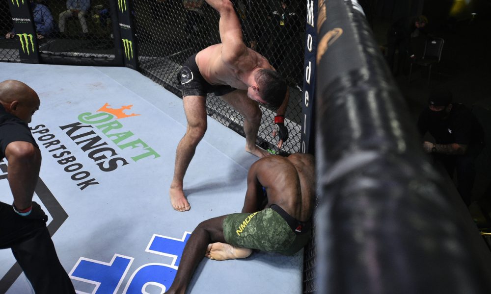 E a cautela se fez valer nos segundos finais da etapa, quando um knockdown seguido de golpes no ground and pound obrigaram o árbitro a interromper o confronto e decretar a vitória do brasileiro.