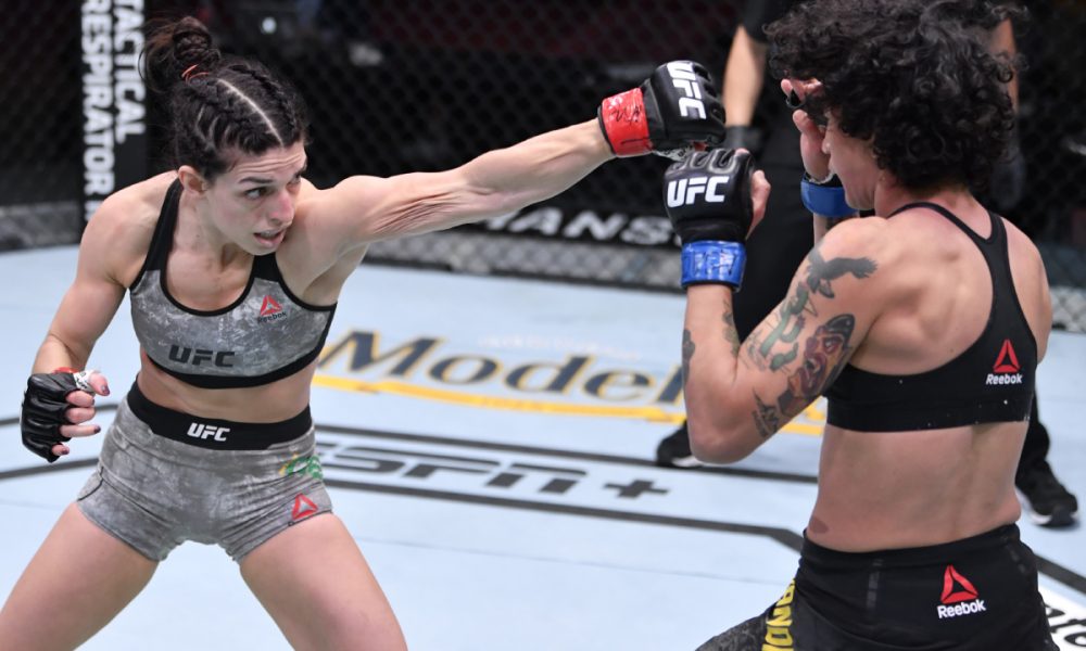 Em duelo que colocou duas brasileiras frente a frente no octógono, o esperado confronto no chão entre as especialistas em jiu-jitsu Mackenzie Dern e Virna Jandiroba foi apagado por uma intensa troca de golpes em pé. E a melhor ficou com a filha do lendário lutador Welington ‘Megaton’ na decisão dos jurados.