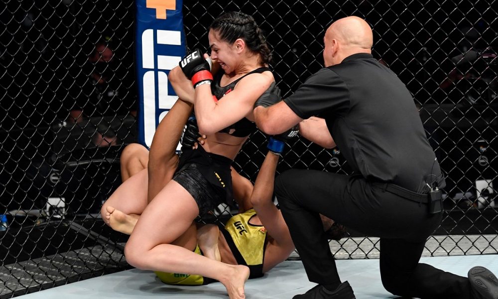 Após um início abaixo da expectativa no UFC, Ariane Lipski encontrou sua boa fase dentro da organização. No último sábado (18), a ‘Rainha da Violência’ aplicou uma chave de joelho em Luana ‘Dread’ e conseguiu sua segunda vitória seguida dentro do octógono, em evento realizado na ‘Ilha da Luta’, em Abu Dhabi (EAU). O golpe da brasileira impressionou pela eficiência e pelo fato da articulação da perna de sua rival ser forçada até o limite. Por essa finalização, inclusive, a paranaense recebeu o bônus de ‘Performance da Noite’.