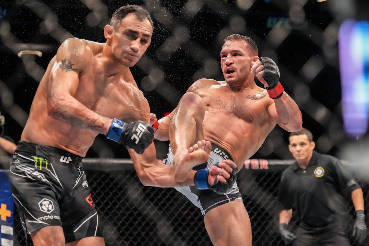 Um dos destaques da noite foi Michael Chandler, que aplicou um nocaute brutal sobre Tony Ferguson, também pelo card principal do UFC 274 - Louis Grasse/PxImages