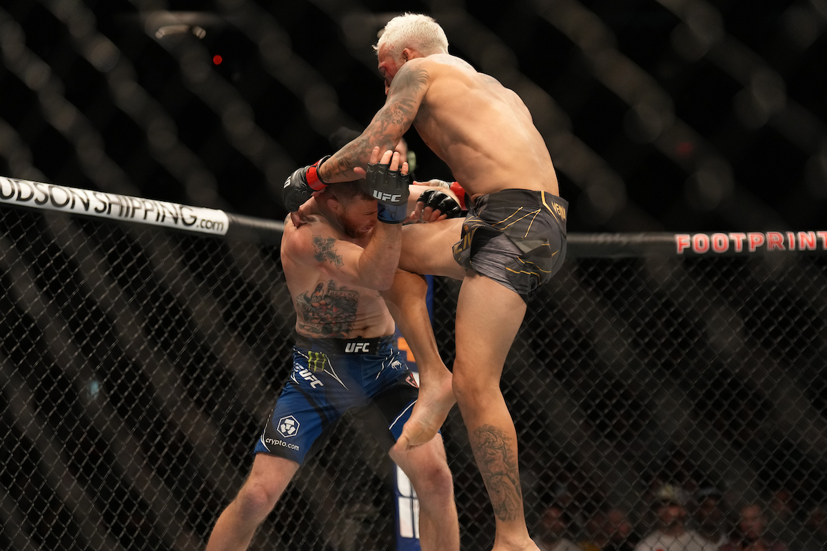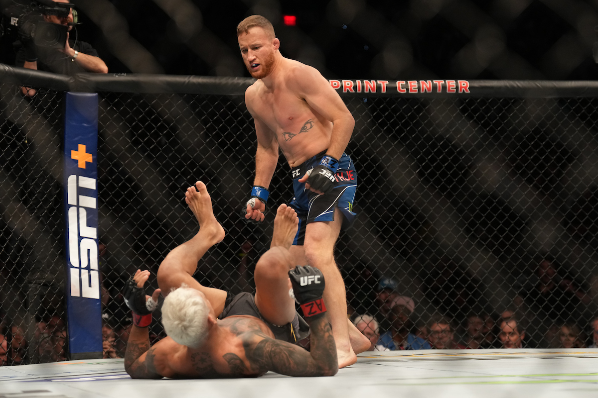 Mesmo com os dois knockdowns sofridos, Do Bronx mostrou mais uma vez que pode competir na luta em pé contra os melhores do mundo e também conseguiu aplicar bons golpes no especialista em trocação Justin Gaethje - Louis Grasse/PxImages