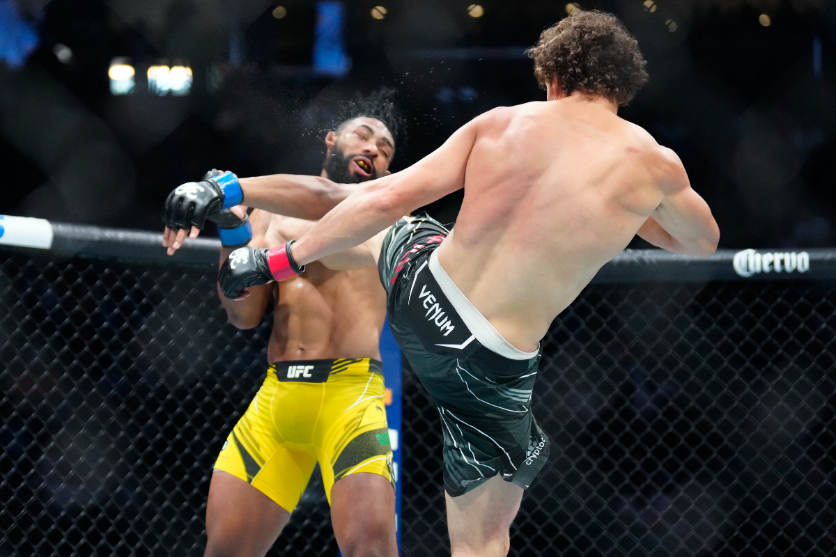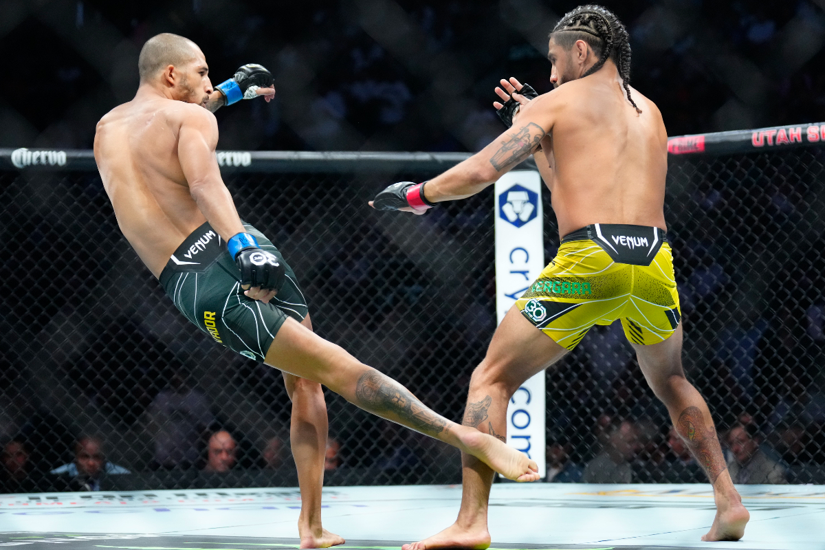 Porém, mais inteiro fisicamente, o brasileiro cresceu nos rounds seguintes e conseguiu manter a luta em pé, vencendo na decisão dividida dos juízes - Louis Grasse/Ag Fight