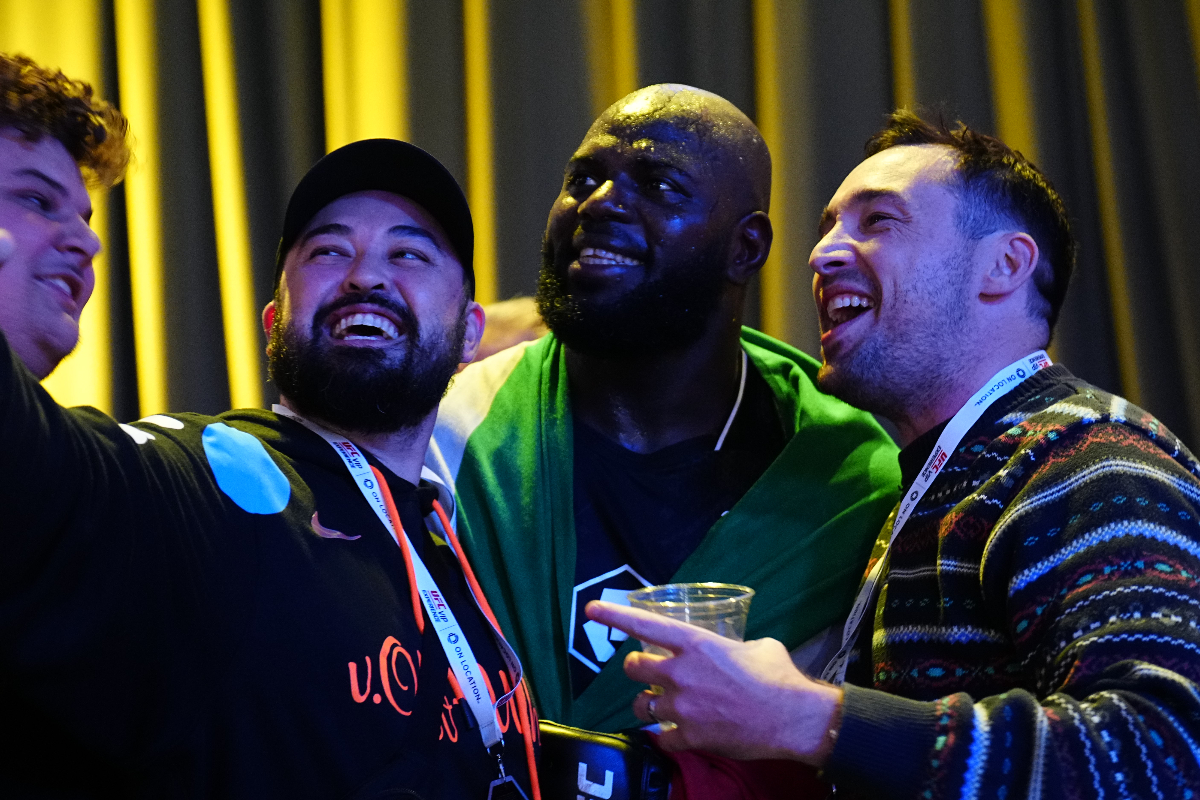 Após o triunfo, 'Bigi Boy', como é conhecido, atendeu aos fãs e posou para fotos com o público que compareceu ao 'Apex' - Louis Grasse/Ag Fight.