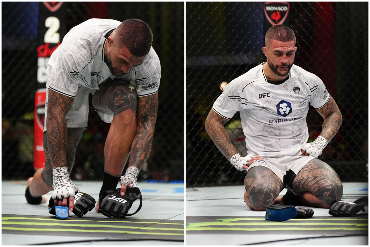 Após a disputa, seu rival, Tyson Pedro, colocou suas luvas no centro do octógono e anunciou sua aposentadoria do esporte - Louis Grasse/Ag Fight
