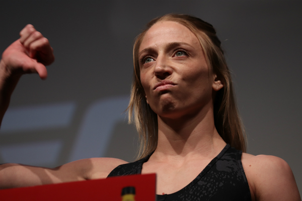 Na última sexta, a americana havia passado mal durante seu processo de corte de peso e cravado cerca de 800 gramas acima do limite da categoria dos pesos-paçhas (52 kg). Como condição para que o combate ainda acontecesse, Emily concordou em perder 20% de sua bolsa em favor da brasileira.
