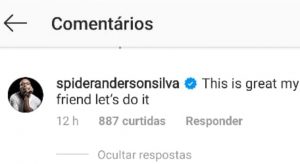 “Isso é ótimo, meu amigo. Vamos fazer isso”, respondeu Anderson Silva.