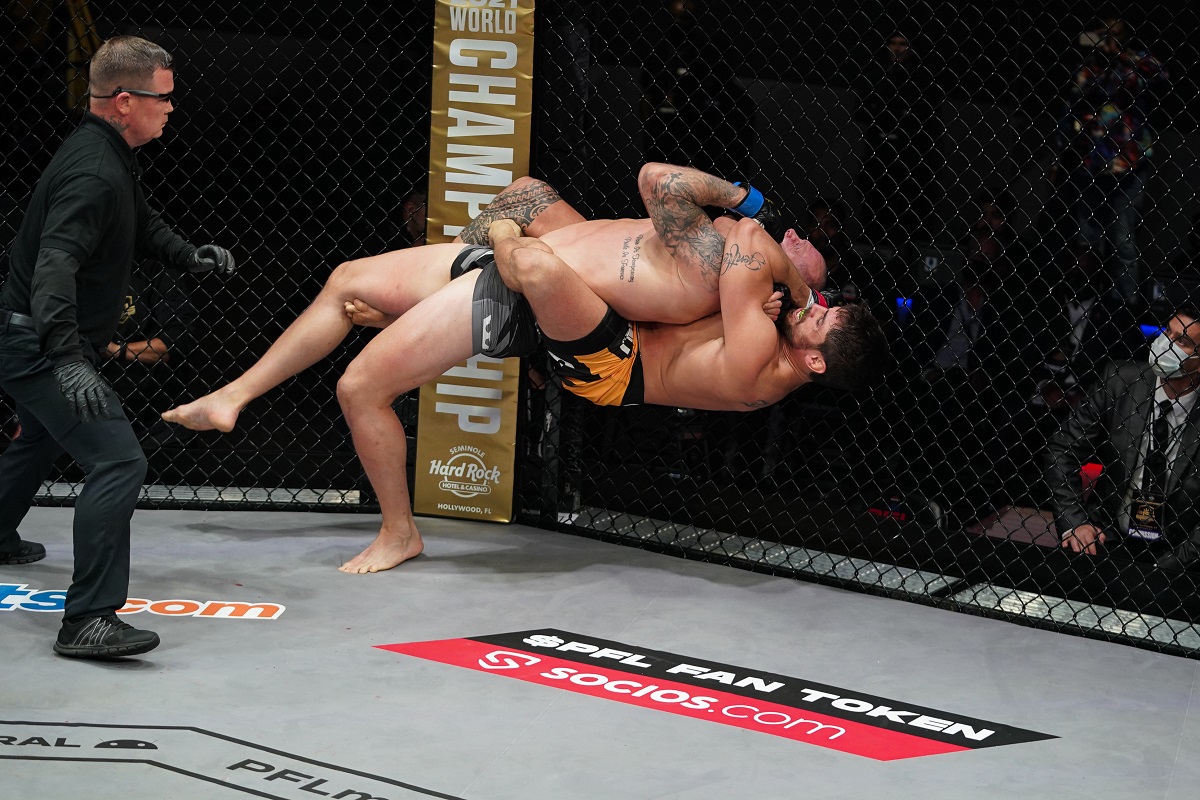 Antônio ‘Cara de Sapato’ foi um dos últimos contratados para essa temporada do PFL. No início deste ano, o brasileiro foi demitido do UFC, decidindo se aventurar em outra organização e, ao que parece, acertou em cheio. Na final do torneio dos meio-pesados, o faixa-preta de jiu-jitsu mostrou toda a sua técnica na arte suave para finalizar Mathin Hamlet, ainda no primeiro round, e ficar com o cinturão.