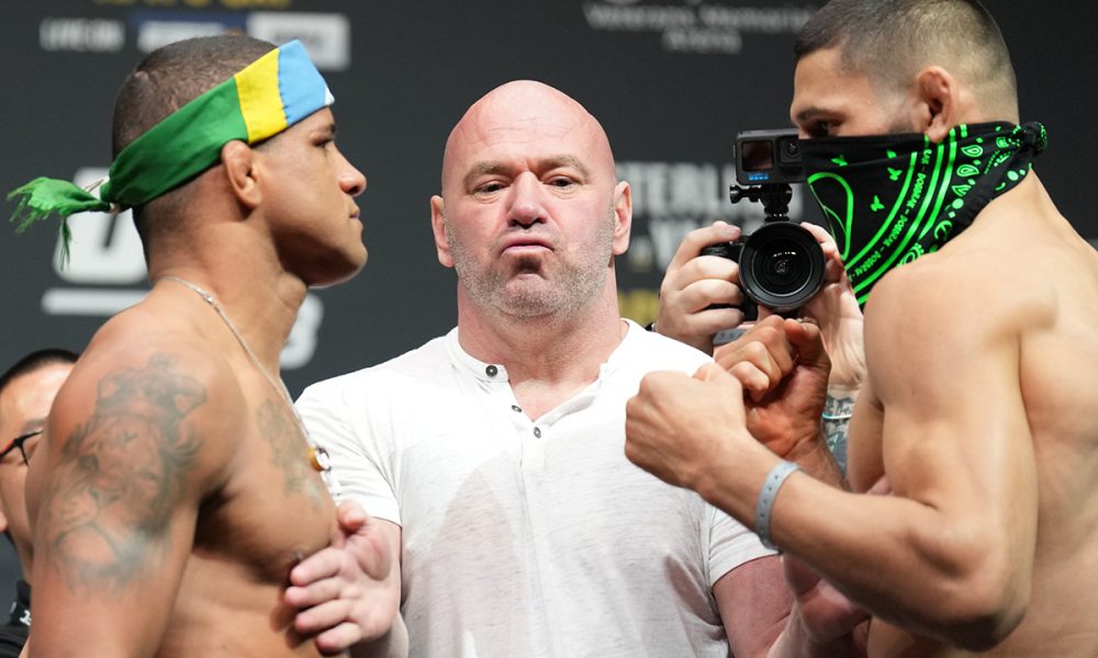 “Se o ‘chame a polícia’ não aparecer, você sabe para quem ligar, Khamzat Chimaev. Cinco rounds”, desafiou o brasileiro, que não demorou muito para ter a resposta de Chimaev.