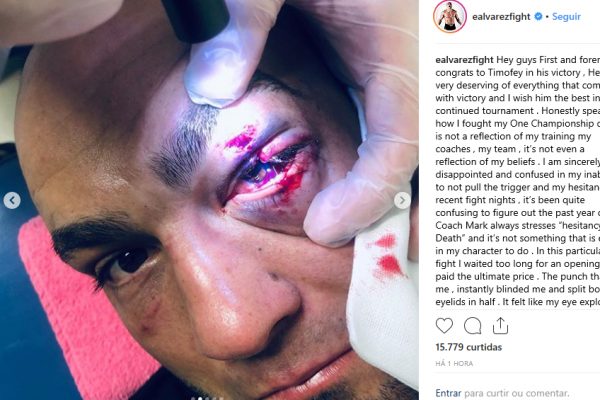 O post chamou a atenção dos fãs pelas marcas que o combate deixou no rosto do americano. Golpeado de forma significativa por Timofey Nastyukhin, Alvarez teve o olho totalmente desfigurado. Além de lamentar o revés sofrido em sua estreia no ONE, o ex-campeão do UFC exibiu suas pálpebras cortadas ao meio.