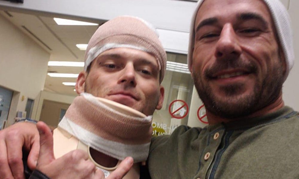 “O oponente tinha um estrangulamento justo e quando eles bateram na grade, a cabeça do Hunter atingiu a porta do cage e isso abriu um corte de 20 centímetros a começar pela linha de seu cabelo”, descreveu o treinador.