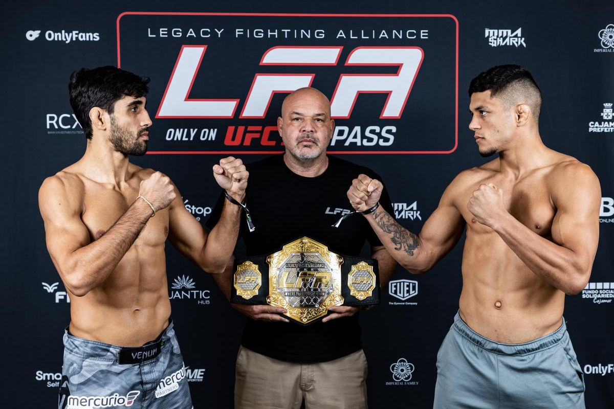 Neste sábado (28), o ‘LFA’ (Legacy Fighting Alliance) desembarca na cidade paulista de Cajamar para realizar a sua edição de número 151. O show contará com duas disputas de cinturão, ambas envolvendo brasileiros, que foram confirmadas de forma definitiva nesta sexta-feira, na pesagem oficial do evento.