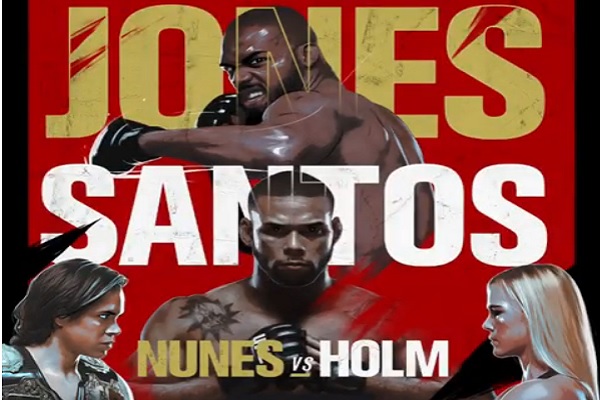 Deste modo, o cartaz oficial do evento (veja abaixo ou clique aqui) conta com os quatro protagonistas em destaque. Com uma sequência de quatro vitórias consecutivas no UFC, ‘Marreta’ prometeu “chocar o mundo” ao bater Jones, que nunca foi superado dentro do octógono. A única derrota que aparece no cartel profissional do americano ocorreu após ele ter sido desclassificado depois de ter aplicado um golpe ilegal, em 2009.