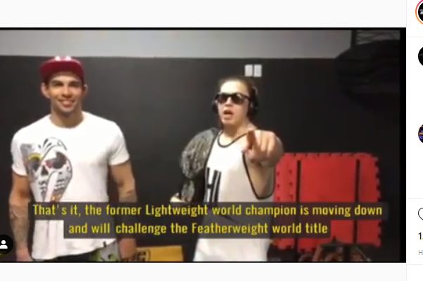 “É isso aí, o (ex) campeão do peso-leve está indo disputar o cinturão do peso-pena. Dia 25 de julho, é o ‘Brave 24’. Conto com a sua torcida porque a nossa está pesada”, declarou o humorista, com o cinturão da liga no ombro.