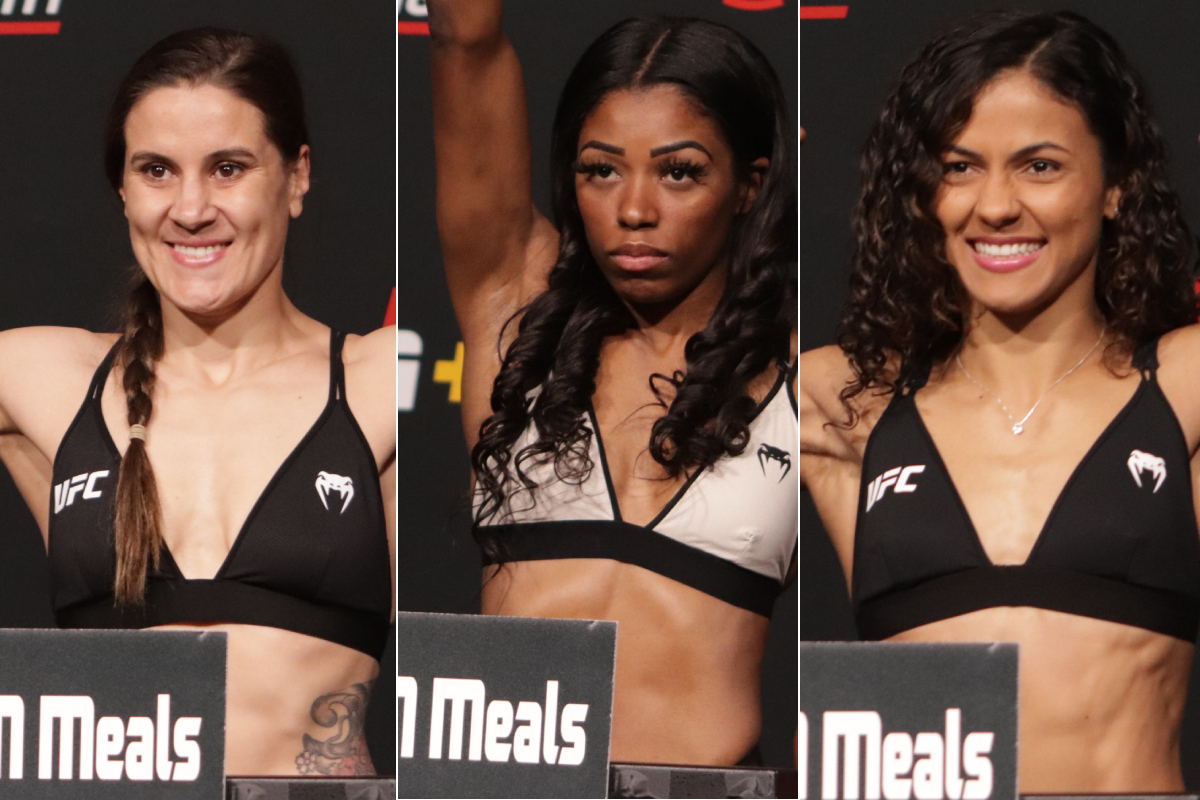 Ex-desafiante ao cinturão dos pesos-moscas, Jennifer Maia cravou 56.7 kg, cerca de 300 gramas a mais do que a rival ucraniana Maryna Moroz. A disputa é fundamental para a carreira da brasileira, que perdeu duas lutas no início deste ano e precisa vencer para se manter no top 10 do ranking da categoria.
