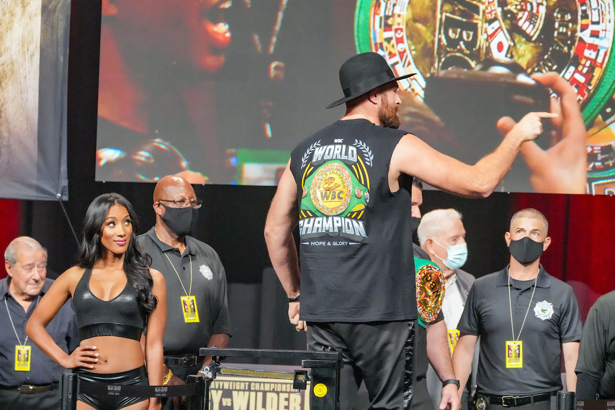 Como protagonizam a luta principal do evento, Fury e Wilder, naturalmente, foram os últimos atletas vistos na pesagem e a espera valeu a pena. Já na primeira aparição de ambos na cerimônia, a rivalidade era notória. Como é o desafiante em questão, ‘The Bronze Bomber’ se encaminhou para a balança e apresentou 107,9 kg. Na sequência, ‘The Gypsy King’ alcançou a marca de 125,6 kg. Após cumprirem o tradicional processo, não demorou para as estrelas começarem a discutir.