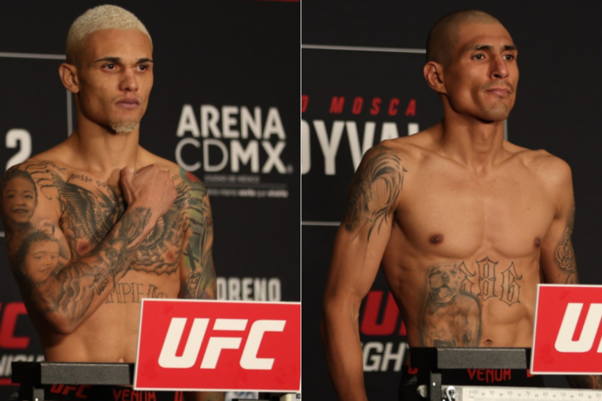 A principal atração do UFC México foi confirmada na pesagem oficial do evento, nesta sexta-feira, mas não sem um certo suspense. Primeiro a subir na balança, Brandon Moreno marcou 57,1 kg e fez sua parte. Porém, seu oponente, o americano Brandon Royval, causou apreensão ao ser apenas o penúltimo atleta a se apresentar na cerimônia. Contudo, ‘Raw Dawg’ bateu o mesmo peso do mexicano e assegurou a realização do ‘main event’ do sábado.