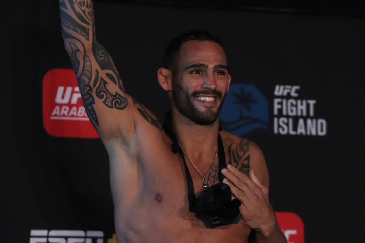 Sem competir desde novembro de 2018, o ex-participante do ‘TUF Brasil’ só encarou a balança quando faltavam 30 minutos para o final da cerimônia e registrou 77.5 kg, o limite dos meio-médios. Neste sábado, o argentino encara Li Jingliang, que bateu 400 gramas a menos.