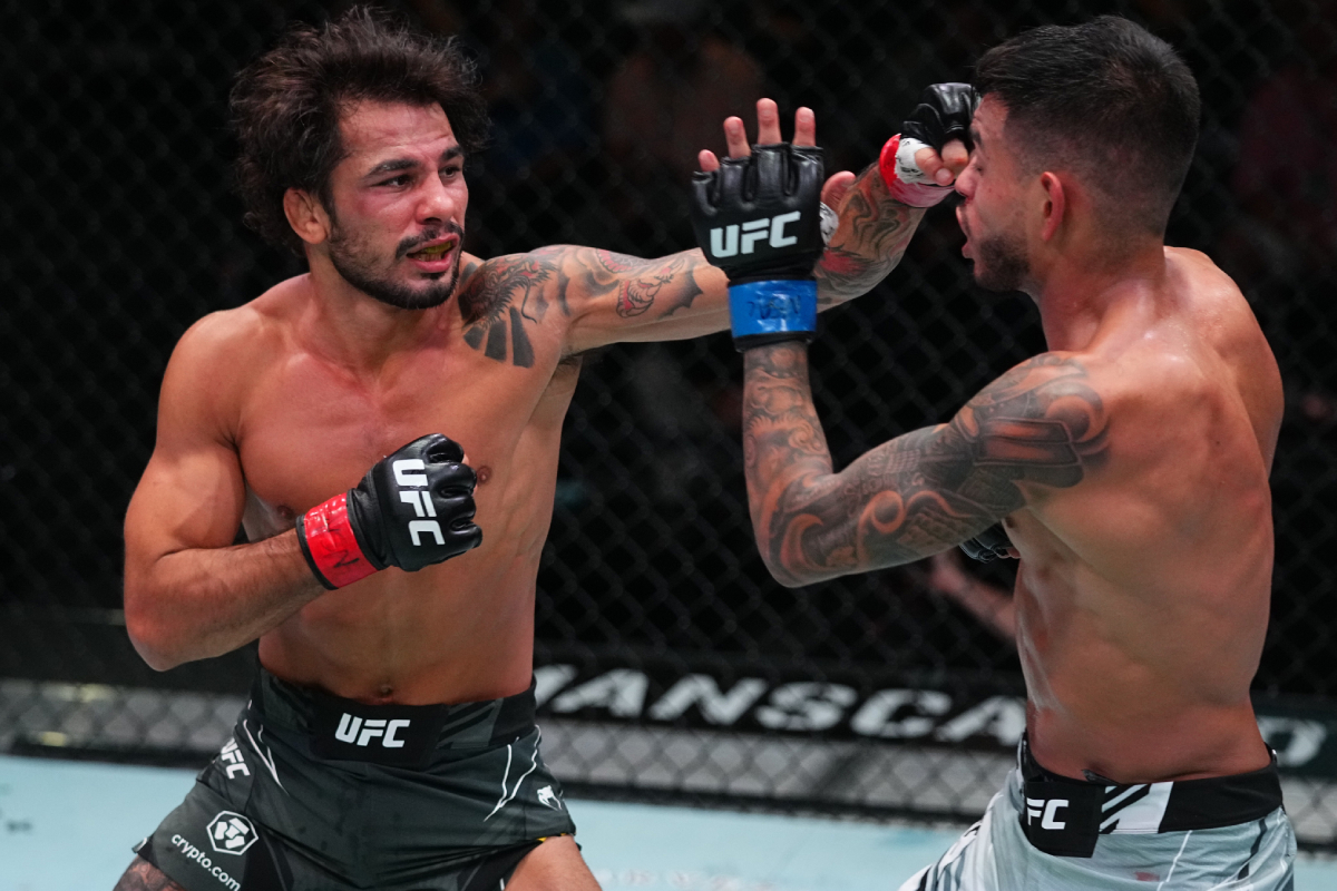 “Gosto do Moreno, ele sabe disso, mas agora é a minha vez. Quero lutar com você em dezembro, o que você acha? Está bom para você?”, desafiou Pantoja, recebendo aprovação imediata do campeão, que acompanhava tudo de perto, como comentarista da ESPN Latina.