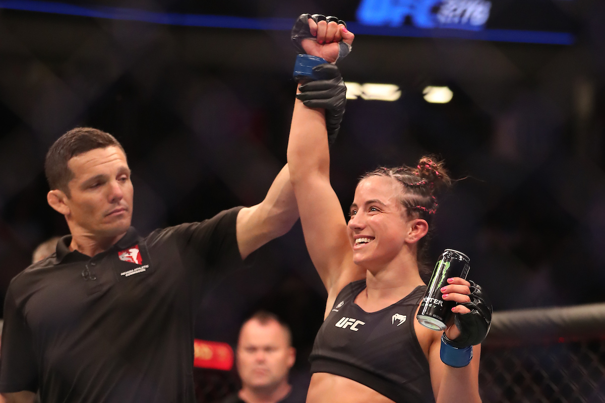 Com apenas 25 anos, Maycee Barber vive, possivelmente, o melhor momento de sua carreira. Já são cinco vitórias consecutivas no Ultimate – sua maior sequência desde que entrou na organização, em 2018. Apesar da boa fase, ‘The Future’, como é conhecida, ainda engole a seco seu último revés no octógono. Em 2021, a americana foi derrotada por decisão unânime por Alexa Grasso e, pouco mais de dois anos depois, busca revanche.