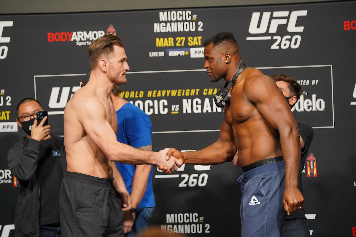 As estrelas do UFC 260 vivem grande fase no MMA e estão confiantes para o novo duelo. Miocic admitiu que seu adversário evoluiu e revelou que sabia que, cedo ou tarde, o encontraria novamente. Apesar de reconhecer a qualidade do rival, o americano ressaltou que seu estilo de luta é péssimo para o mesmo e prometeu exterminá-lo. Em busca de vingança, Ngannou garantiu que refinou suas habilidades e explicou que não tinha experiência suficiente para lidar com o oponente anteriormente.