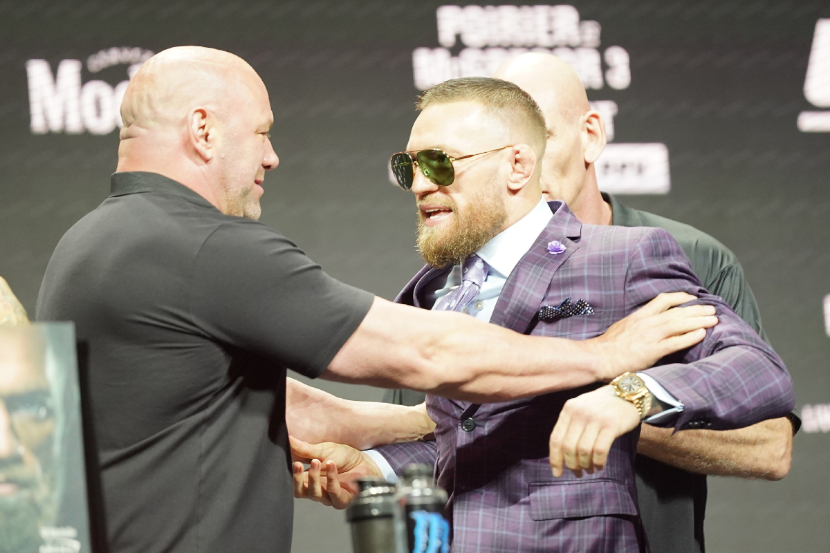 Frente a frente com o rival Dustin Poirier, com quem já duelou duas vezes em placar que segue empatado, Conor contou com a ajuda da torcida que compareceu ao ginásio T-Mobile Arena. Com cerca de 5 mil fãs no ginásio, o ex-campeão de duas categorias do UFC começou fazendo pouco caso da marca de molho de pimenta do americano e jogou no chão os vidros que estavam na mesa. Isso, claro, para delírio dos torcedores, que balançavam algumas bandeiras da Irlanda.