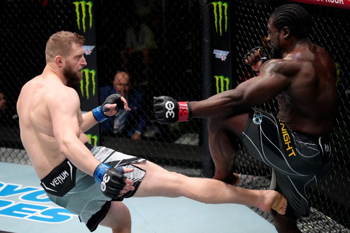Segunda luta do card principal do UFC Vegas 69, o confronto ente William Knight e Marcin Prachnio roubou a cena. Mas não pelo duelo travado em si, e sim pela postura de um dos atletas envolvidos no combate. Totalmente apático, o meio-pesado (93 kg) americano se tornou um alvo fácil no octógono e permitiu que seu rival polonês quebrasse o recorde de maior número de chutes na perna aplicados em uma luta de três rounds na história do Ultimate – com 63 golpes aplicados na região.
