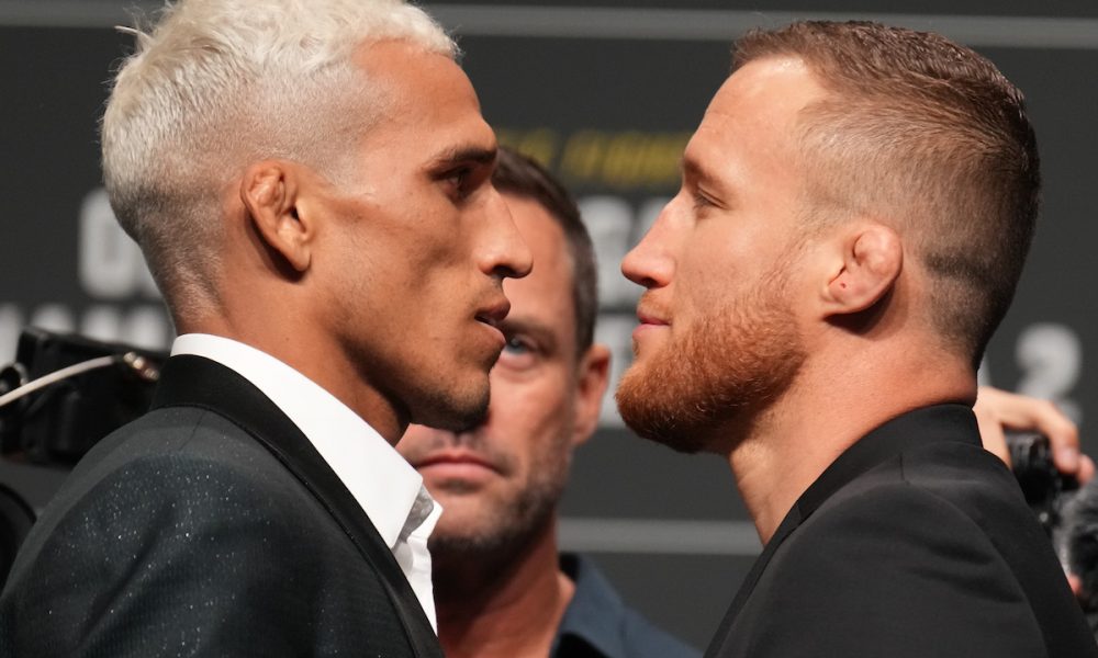 Durante a encarada, no entanto, o clima quase amistoso entre os pesos-leves deu lugar à tensão. Ainda que de forma respeitosa, sem nenhuma provocação, Charles e Justin trocaram olhares profundos ao se encontrarem frente a frente no centro do palco, até que o americano desviou a visão, girando seu corpo em direção ao público e interrompendo a formalidade.