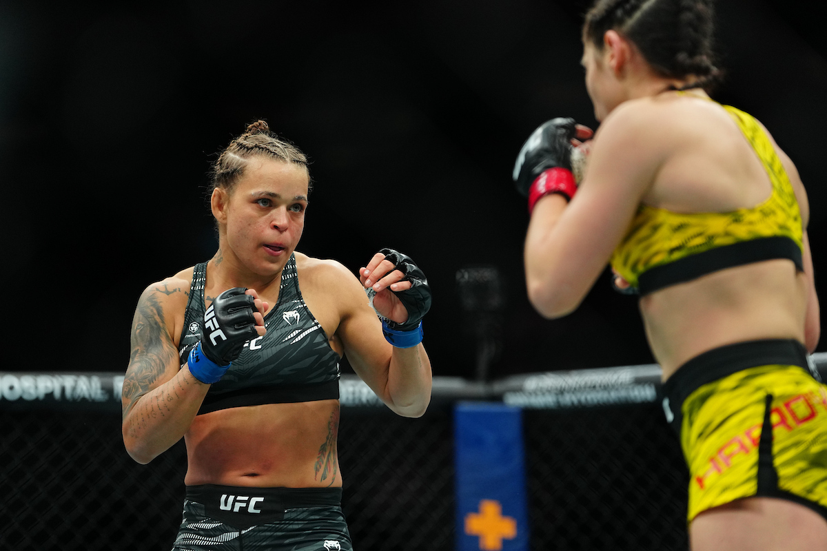 Em sua primeira experiência no peso-mosca (57 kg) do Ultimate, Eduarda Moura fez bonito e saiu com mais uma vitória no octógono mais famoso do mundo. Neste sábado (16), em Nova York (EUA), na abertura do card preliminar do UFC 309, ‘Ronda’ – como a sergipana é conhecida – superou a venezuelana Veronica Hardy, na decisão unânime dos juízes.