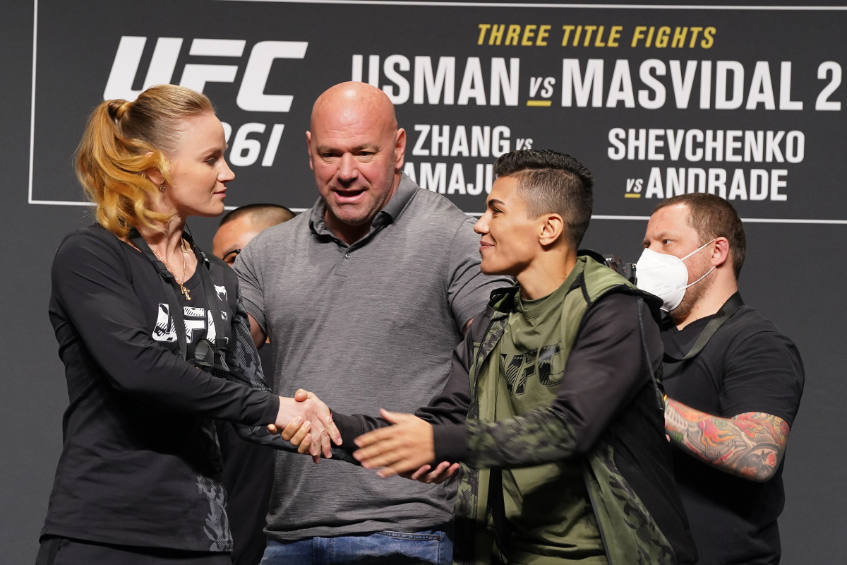 O UFC 261 ainda conta com mais duas disputas de cinturão. O ‘main event’ é a revanche entre Kamaru Usman e Jorge Masvidal, válida pelos meio-médios (77 kg). Como os protagonistas da atração são rivais, o clima entre eles é hostil. No primeiro encontro, realizado em 2020, o campeão da categoria controlou o desafeto e venceu sem dificuldade. No ‘co-main event’, Zhang Weili e Rose Namajunas disputam o título do peso-palha (52 kg), em combate bastante aguardado por parte dos fãs. Após superar Joanna Jedrzejczyk em uma verdadeira batalha, em 2020, a chinesa se consolidou como a número um da divisão, mas a ex-campeã prometeu reconquistar a cinta e adiantou que vai finalizar a oponente.