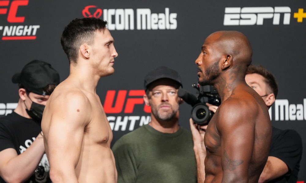 Atração do card principal do UFC Vegas 36, realizado no último sábado (4), o combate entre Modestas Bukauskas e Khalil Roundtree terminou com uma séria lesão sofrida pelo primeiro, ao receber um preciso chute oblíquo do adversário. Mas, apesar da situação desagradável, o clima entre os lutadores não foi afetado, como pôde ser visto em um respeitoso encontro nos bastidores do evento.
