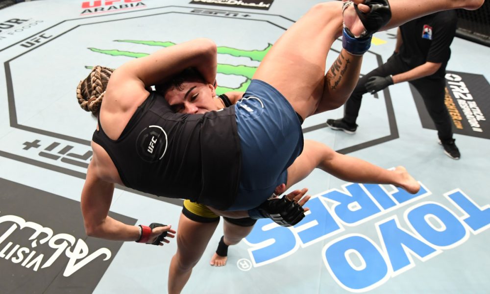 Ex-campeã peso-palha (52 kg) do UFC, Jéssica ‘Bate-Estaca’ estreou na divisão peso-mosca (57 kg) do evento neste sábado (17), em Abu Dhabi (EAU). E diante de Katlyn Chookagian, número um do ranking, sua apresentação foi coroada com um nocaute logo nos primeiros cinco minutos de ação no octógono e um pedido de luta pelo cinturão.