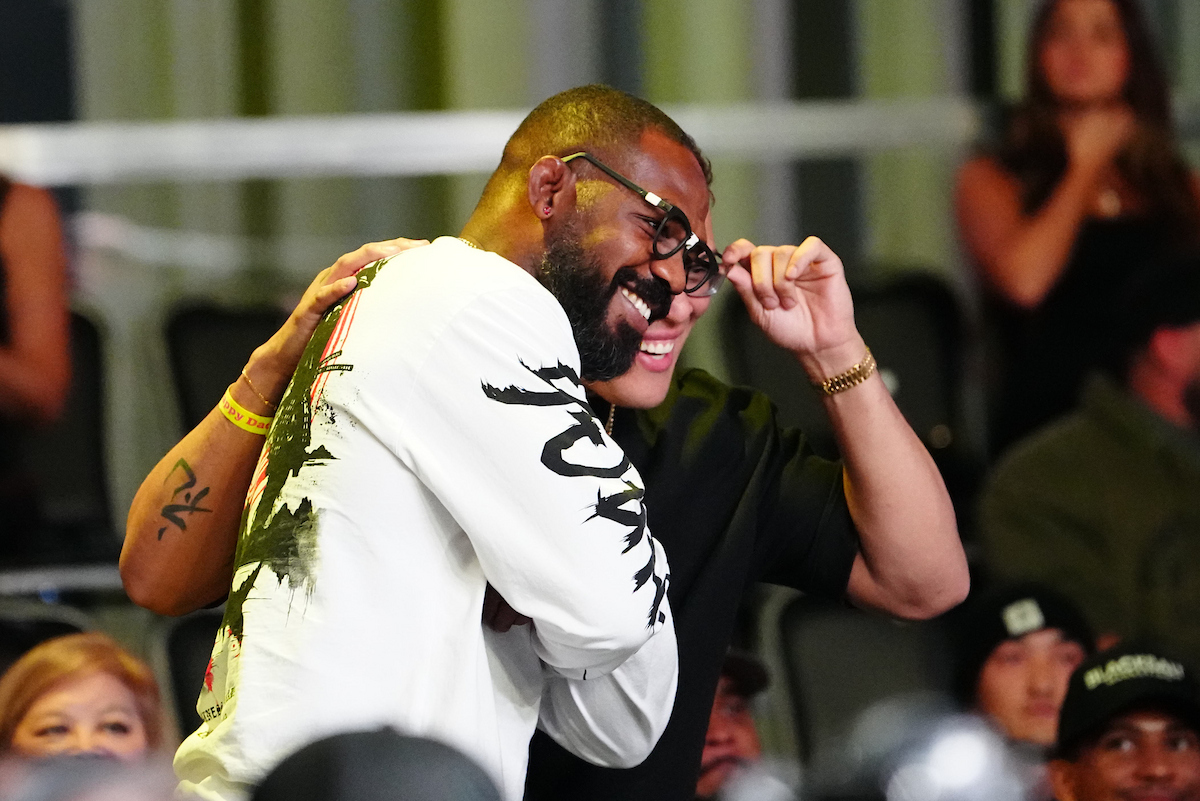Jones entrou na onda de Carlos ao aderir o usar um óculos específico – marca característica da equipe do brasileiro. Ao lado do octógono montado no Apex, o ‘GOAT’ do MMA aplaudiu o triunfo do meio-médio (77 kg) paulista (veja abaixo ou clique aqui). Após o combate, ‘Bones’ quebrou o protocolo e se juntou ao time de Prates, com direito a selfies, festa e cumprimentos de ambas as partes (veja abaixo ou clique aqui). Outras estrelas do UFC que também estavam presentes no show, como Aljamain Sterling e Khalil Rountree Jr, também abraçaram o ‘hype’ e surgiram com os já tradicionais óculos da ‘Fighting Nerds’.