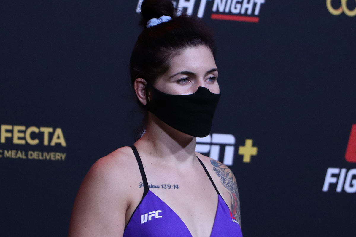 Em sua estreia pelo UFC, a americana foi nocauteada por Jessica-Rose Clark, em setembro de 2020. Agora, diante de Erin Blanchfield, no dia 18 de setembro, a lutadora, que descerá para o peso-mosca (57 kg), tentará conquistar seu primeiro triunfo na companhia e, consequentemente, melhorar sua situação financeira.