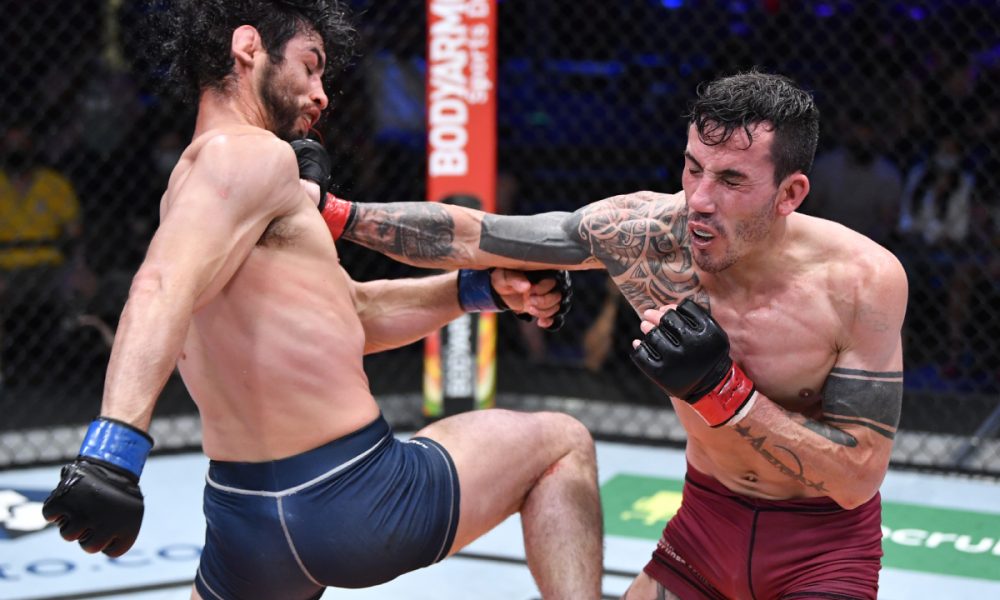 Natural de Santa Catarina, Saimon Oliveira protagonizou combate agressivo e movimentado contra o mexicano Jose Alday, a quem venceu por decisão dividida após três assaltos de constante troca de domínio no octógono. Aos 30 anos, o representante da ‘Astra Fight Team’ venceu sua quinta luta seguida na carreira e ampliou seu cartel profissional para 18 triunfos e apenas uma derrota.