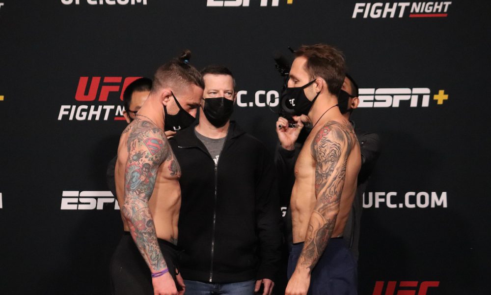 A COVID-19 não dá trégua para o Ultimate. Dessa vez, o UFC Vegas 22, evento que acontece neste sábado (20), em Las Vegas (EUA), perdeu o ‘co-main event’ horas antes de sua realização. De acordo com a informação divulgada pela própria companhia, a luta entre Gregor Gillespie e Brad Riddell, válida pelo peso-leve (70 kg), foi retirada da atração por violar o protocolo de segurança de combate ao vírus. Ainda segundo o comunicado, o embate entre os atletas deve ser remarcado.