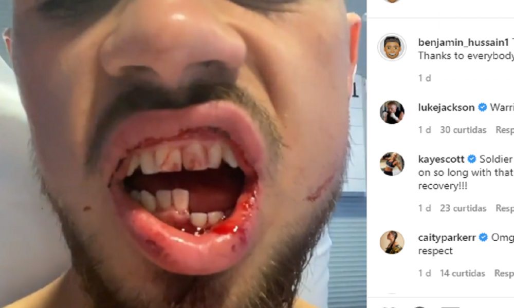 Benjamin foi encaminhado para um hospital próximo do local e por meio de sua conta no ‘Instagram’ (veja abaixo ou clique aqui), compartilhou um vídeo em que mostra a extensão de sua fratura. Apesar de ter se lesionado ainda no segundo assalto, o atleta tentou resistir e continuar a luta. No entanto, após escorrer muito sangue de sua boca, ficou claro que a lesão era séria e o médico teve que interromper o duelo no quinto round.